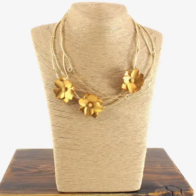 Triple Flower & Rhinestone Necklace